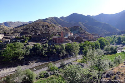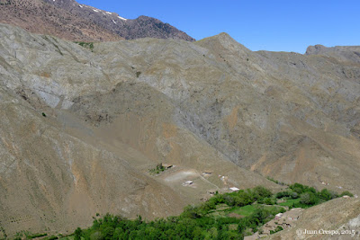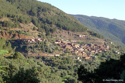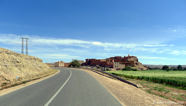Después del desayuno salgo pedaleando por la misma carretera, la N-9. A unos cientos de metros tengo una buena vista de Toufliht, lo que aprovecho para hacer unas fotos. La etapa empieza con unos desniveles más que
